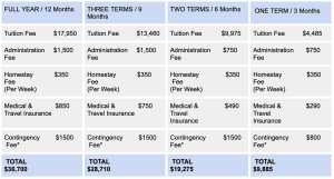 - If the student’s English capability is at an elementary level or below, then individual intensive English tutorials will be required. The cost for these will be depend on the student’s level.