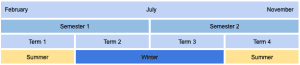 The New Zealand academic year starts in February and ends in early December.